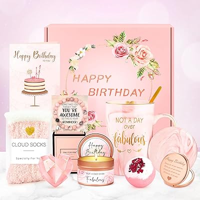 Birthday Gifts for Women Happy Birthday Gift Baskets for Women Unique Not A Day Over Fabulous Mug Gift ideas Pink Gifts Box Set Presents for Her Friends Mom Sister Wife Coworkers Daughter Aunt Mom