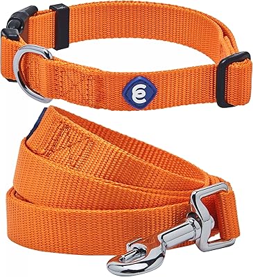 Blueberry Pet Essentials Matching Dog Collar and Leash Set in Orange Vermilion, Adjustable Classic Solid Color Nylon Collar with 5 ft Leash for Medium Dogs